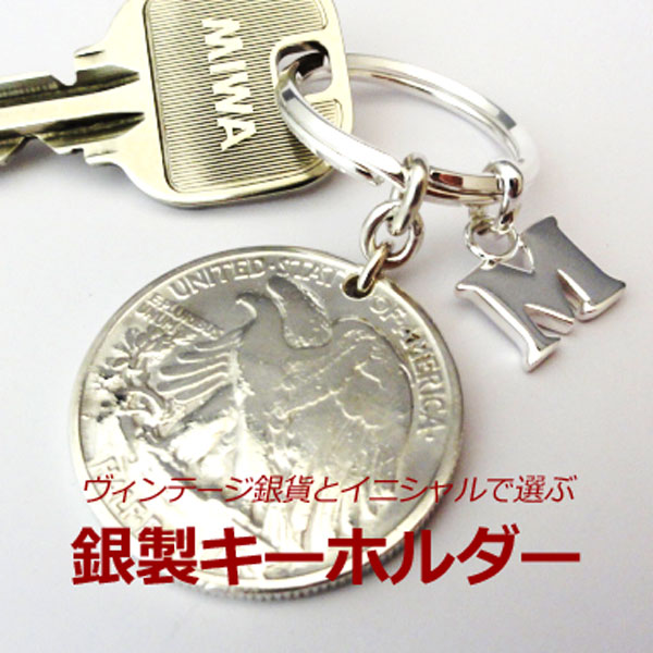 【キーホルダー】銀製 イニシャル &銀貨 キーリング