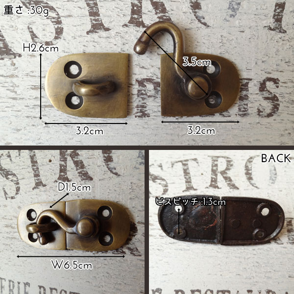 長い年月を経て変色したような味わいの真鍮製鍵 H2.6cm×W6.5cm×D1.5cm 1個売り サイズ H2.6cm×W6.5cm×D1.5cm ビスピッチ:1.3cm 鍵部分:3.5cm 重さ:30g 材質 真鍮 色 アンティークゴールド 商品説明 アンティーク商品に興味はあるけど、高そうで手が出ない…… そんな方にオススメな商品です 使い慣れた家具の引出しや、扉のつまみを替えるだけで、ビックリするほど素敵にリメイクしちゃいます 長い年月を経て変色したような味わいのある、古色仕上げの真鍮製の鍵です 本物のアンティークにも負けない風合いで、アンティークにこだわりを持っておられる方も文句なしの完成度です 一点一点手作業で作られており、ハンドメイドならではの味わいと温もりがあります 真鍮ならではのくすんだ輝きが魅力的で、使えば使うほど味が出てくるのも嬉しいですね 装飾性と実用性を兼ね備えたオススメ商品です 取り付けも簡単なので、憧れのアンティーク家具もこんなに手軽に手に入れることができるんです いつもの家具にもちょっとおめかしさせてあげませんか? ご注意 1個の価格です モニターによって、画像商品と実物商品との色目が違うことがあります アンティークの風合いを出すために特殊なサビ加工や汚し、研磨等を施しています 商品によって加工の程度は異なりますが、商品の特徴としてご理解頂きその風合いをお楽しみ下さい 一つ一つ手作業で製作している為、サイズやデザイン、お色などに若干の誤差が生じる事があります予めご了承下さいませ